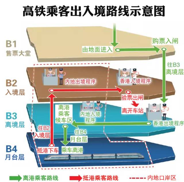 西九龍站實施“ 一地兩檢”,實際上是一種便捷的通關安排,去往內地的乘客在站內即可一次性完成香港和內地的出境、入境程序,直接登車前往其他城市。